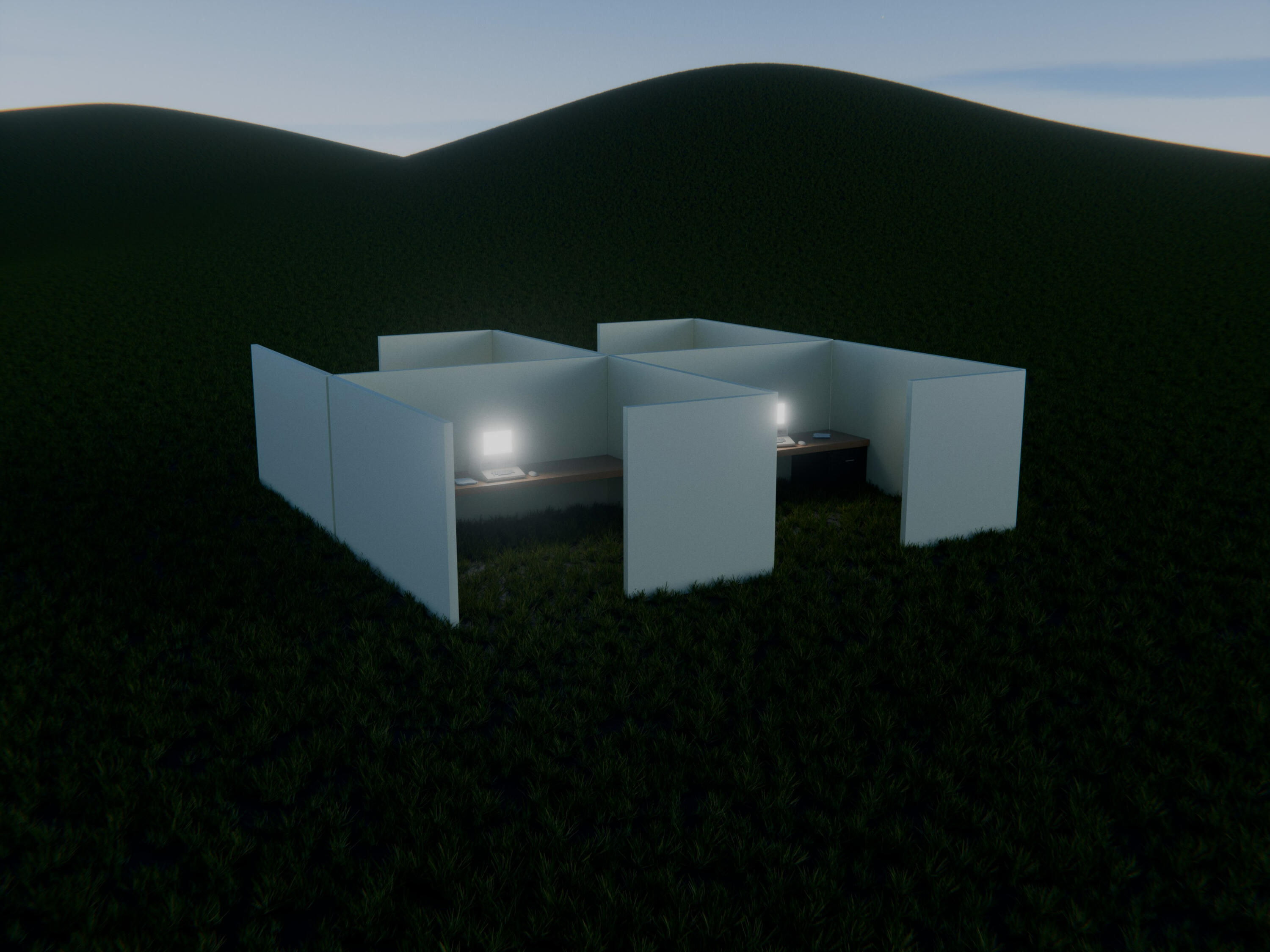 “Architects of Change” contrasts the highly human-ordered working environment with smoother, naturally-formed surroundings, encouraging viewers to consider what our systems of work and organization might look like outside of their intended surroundings. Things that might seem of importance and value in a work setting seem completely nonsensical here, out in nature.