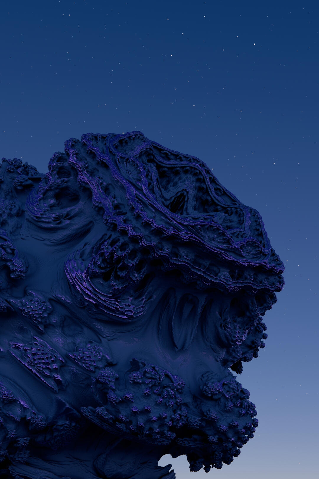 My current artistic practice has developed from my interests in worldbuilding, structured escapism, and procedural development. I have found it incredibly rewarding to be able to create worlds that people can immerse themselves in, and believe that such immersion has real value for our lives. Using procedural development as one of the core means to achieve this has been especially interesting to me as it allows me to work in measured and mathematical ways, as well as allowing both rapid production and expression of forms that can range from very familiar to nearly unknowable with ease. For example, the image on the right is a work I produced called STR-M-0001 "CRONUS," and represents a 3D fractal known as the Mandelbulb. This form is both incredibly unique and abstract, and represents a hybridization of mathematics and artistic expression that I'm interested in working within.